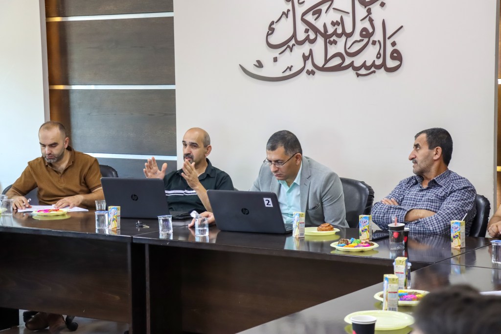 The College of Applied Professions at Palestine Polytechnic University organized a workshop entitled “The Palestinian-Jordanian Model for Dual Vocational and Technical Education”. The event was attended by University President Prof. Dr. Mustafa Abu Safa, Vice President for Planning and Development Eng. Ayman Sultan, Assistant to the President for Community Service Dr. Mohammad Abu Taha, as well as representatives from the Ministry of Higher Education and Scientific Research Eng. Rabee Abu Shamlah, Palestine Technical University – Kadoorie Dr. Mohammad Al-Jallad, Hebron Chamber of Commerce and Industry Eng. Thaer Zugheir, and the University of Lisbon – Portugal, in addition to experts and academics from the college.